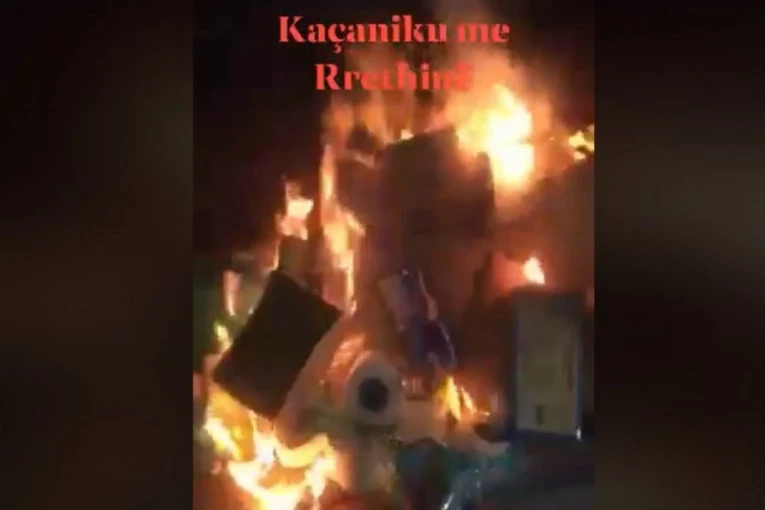 Prištinski mediji objavili su video-snimak iz Kačanika na kojem se vidi kako neimenovani Albanci spaljuju srpske proizvode.
