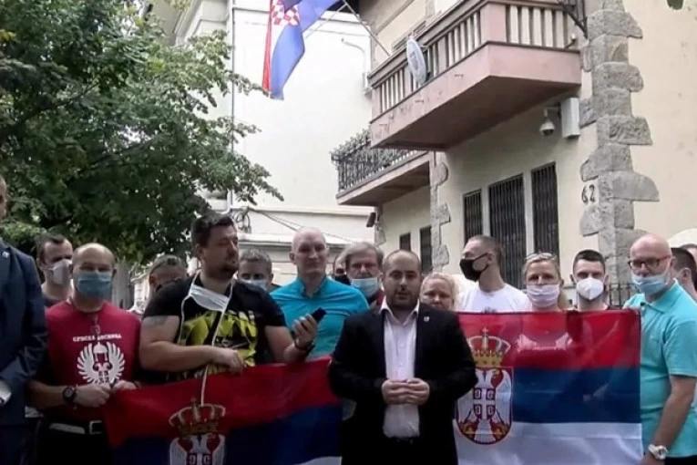 (VIDEO) SRPSKA DESNICA PRED AMBASADOM HRVATSKE U BEOGRADU: Vacić se gnuša akcije "Oluja"