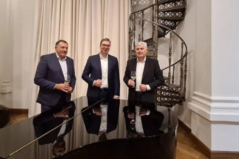 Predsednik Srbije Aleksandar Vučić ugostio je večeras srpskog člana Predsedništva BiH Milorada Dodika i predsednika Hrvatske demokratske zajednice (HDZ) BiH i zamenika predsedavajućeg Doma naroda Parlamentarne skupštine BiH Dragana Čovića.