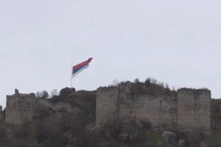 Srpska trobojka na srednjovekovnoj tvrđavi iznad Zvečana, spuštena je na pola koplja