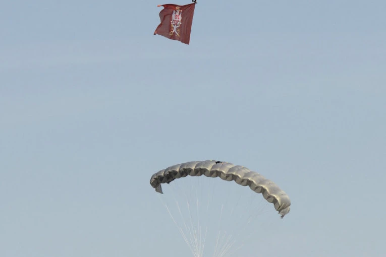 Zastava sa natpisom "Za otadžbinu, za druga, za pušku, za vojničku i ratničku čast - padobranci 63. padobranske brigade" prethodno je osveštana, a akcija je pokrenuta uz odobrenje Generalštaba Vojske Srbije, prenosi RTS.