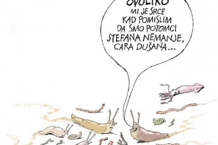 Sporna karikatura koju je objavio opozicioni portal Nova.rs predstavlja Srbe kao crve, puževe golaće i slične životinjice, vređajući istoriju srpskog naroda na jadan i bedan način, a razlog za to su pozitivni komentari na spomenik Stefanu Nemanji.