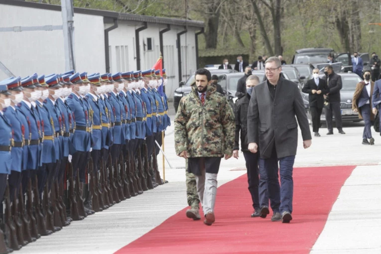 (FOTO) PREDSEDNIK VUČIĆ I ŠEIK NASER U BATAJNICI: Prisustvuju prikazu vojne opreme i naoružanja!