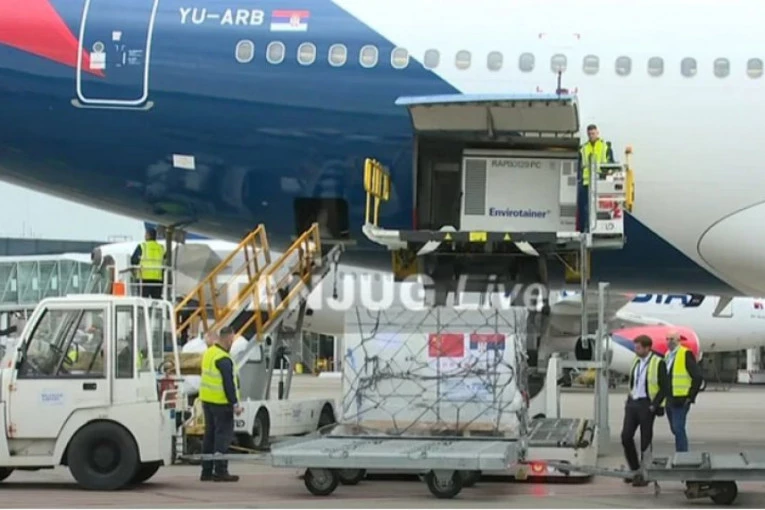 Danas oko 7 časova na beogradski aerodrom Nikola Tesla iz Kine stigla je pošiljka od 440.000 doza Sinofarm vakcina.
