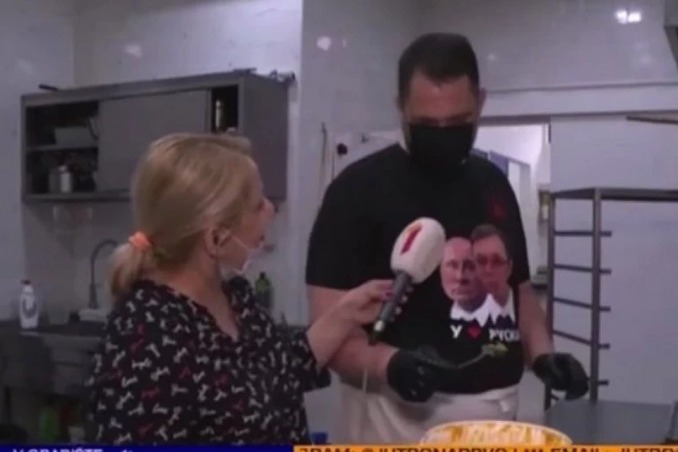 Vredni i šarmantni pekar u majici sa likom Aleksandra Vučića i Vladimira Putina, predsednika Srbije i Rusije, objasnio je domaćicama zašto se hleb peče tačno 22 minuta.