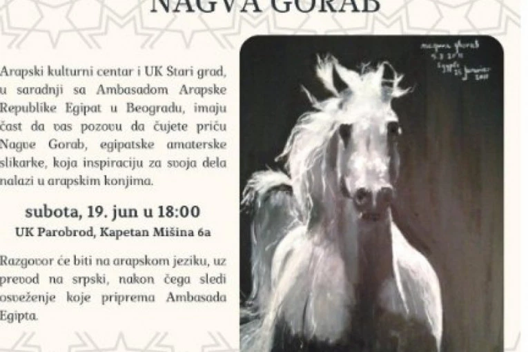 U UK Parobrod u subotu u 18 sati biće organizovan razgovor sa egipatskom amaterskom slikarkom Nagavom Gorab koja inspiraciju za svoja dela nalazi u arapskim konjima.