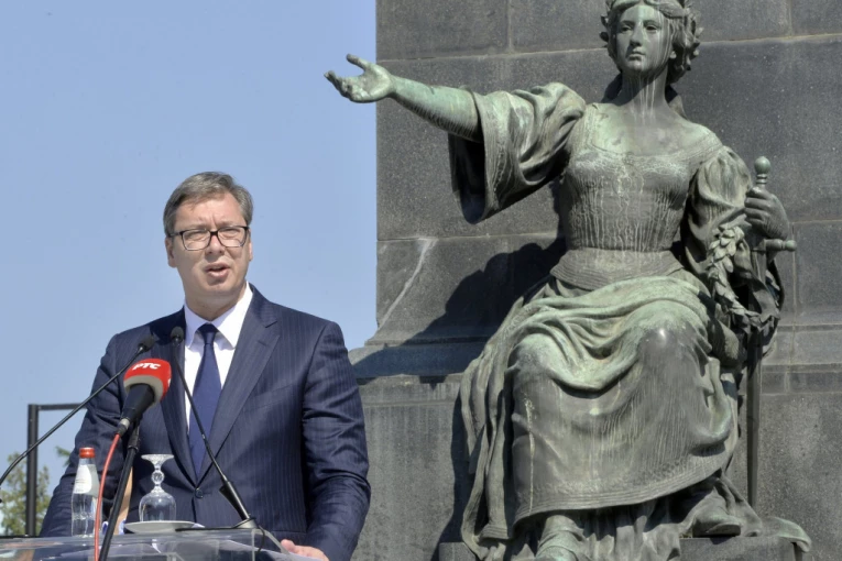 Foto: printscreen/TVPink- Srbija danas može da se ponosi i da se raduje životu, da se ponosi na kosovske junake, na njihov izbor, oni su verovali i znali da činom žrtve postaju deo jedne lepe istorije. Naučili su nas časti u junaštvu, da ne bežimo ni pred jednom teškoćom i izazovom. Strašan kraj kosovskih junaka bio je za nas početak. Naša otpornost da se nikada ne predamo je da istorija viče na nas. Sloboda je osnovni uslo jake Srbije - rekao je Vučić.