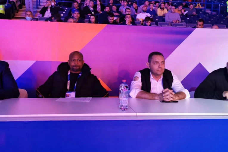 Ministar policije Aleksandar Vulin prisustvuje boks meču našeg superteškaša Vladana Babića protiv Kamerunca i šampiona Afrike Maksima Jegnonga.