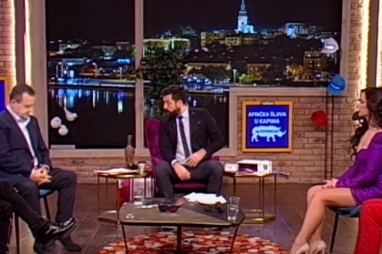 Foto: youtube.com/printscreenU sinoćnoj emisiji Amidži šoua gosti su bili političar Ivica Dačić, Nenad Okanović popularni glumac i mlade atraktivne glumice Olja Levin i Isidora Građanin iz trenutno najaktuelnije serije "Igra sudbine".