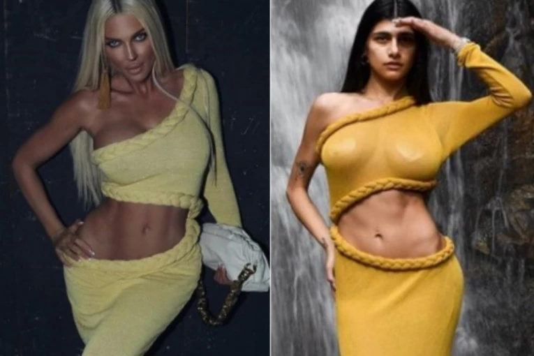 Pevačica Jelena Karleuša nedavno se na snimanju muzičkog takmičenja "Zvezde Granda" pojavila u provokativnoj žutoj haljini sa dubokim razrezima na leđima i stomaku, kakvu je jednom prilikom nosila i svetski poznata porno-glumica Mia Kalifa.