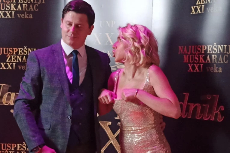 Jovana je sve vreme nameštala haljunu, što je primerio i njen suprug pa je pokušao da joj pomogne. Ona je pukušavala usku haljinu da navuče preko grudi, bojeći se da je dekolte ipak predubok, te da će doći do neke neželjene situacije zbog koje bi završila na svim naslovnim stranama.