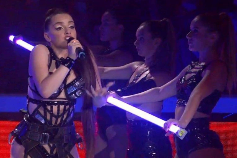 Foto: printskrin/TV PrvaKandidatkinja Belma Huseinefendić iz Tuzle, čiji mentor je Jelena Karleuša, nastupila je u finalu "Zvezda Granda" pod rednim brojem 12.