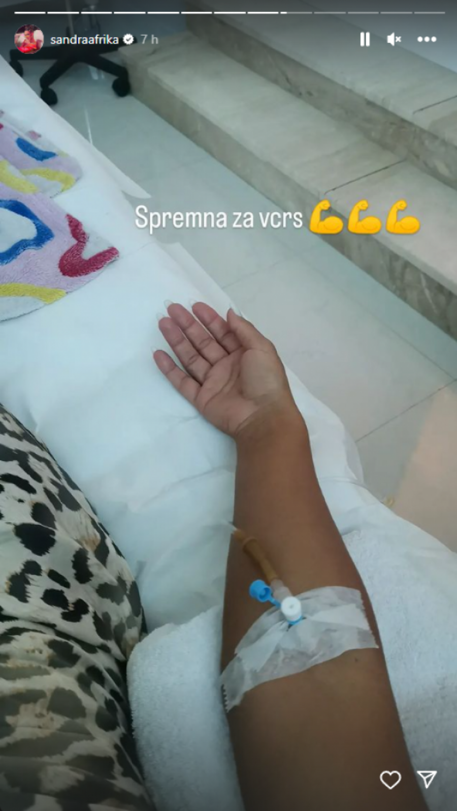 Pevačica je objavila stori na društvenoj mreži Instagram, te svoju fotografiju gde se vidi ruka na koju je prikačena infuzija.
