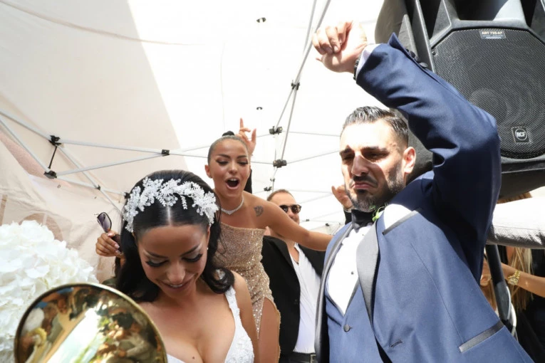 Darko se pozdravio sa Katarininim roditeljima srdačno i izgrlili su se pred svima. Lazić se pozdravio sa ostalim članovima Katarinine porodice, a potom izvadio novčanik i okitio muziku.