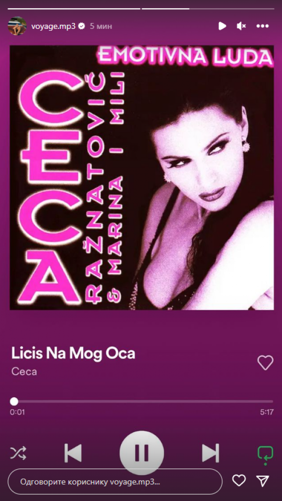 Vojažov otac je Milan Veruović, koji je bio telohranitelj pokojnog Zorana Đinđića, a mladi reper je Karleuši odgovorio tako što je podelio Cecinu numeru "Ličiš na moga oca" na svom Instagram profilu.