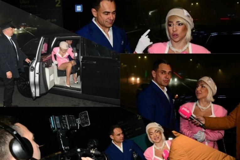Jovana je došla u limuzini u pratnji svog partnera Dragana Stankovića, a ispred beogradskog aerodroma pojavila se obučena u stilu Džeki Kenedi.