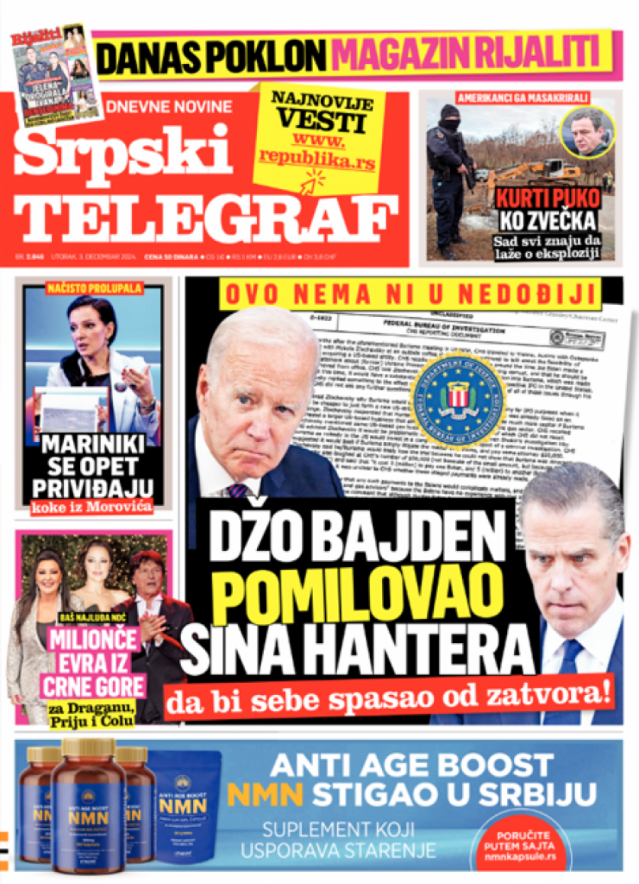Srpski telegraf u izdanju za utorak 3. decembar donosi pregršt važnih i interesantnih priča!