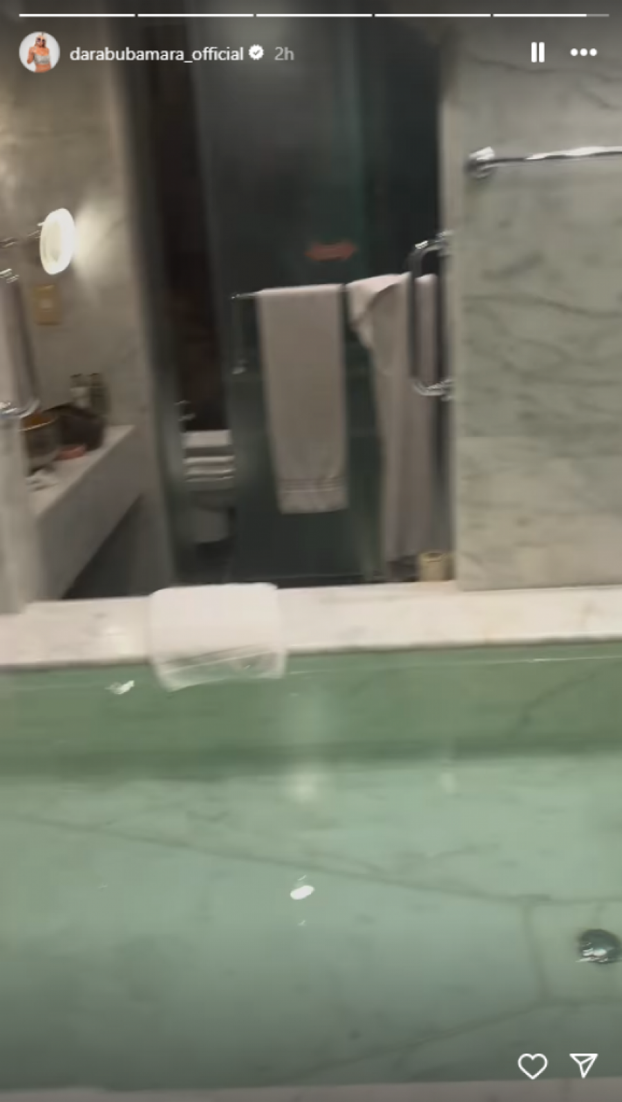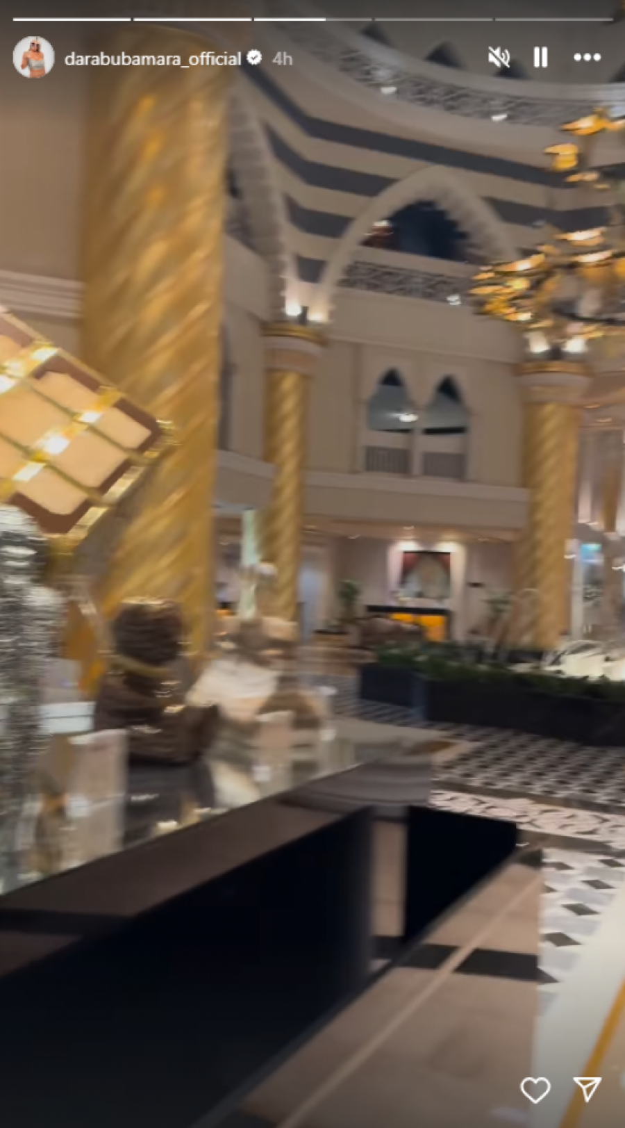 Dara se pohvalila luksuznim lobijem hotela u kome je odsela, a prizor je njenim fanovima na pomenutoj društvenoj mreži oduzeo dah. Prostor je ukrašen zlatnim stubovima, a tu su i moćne statue kristalnih konja, kao i fontana, dok su podovi od mermera.