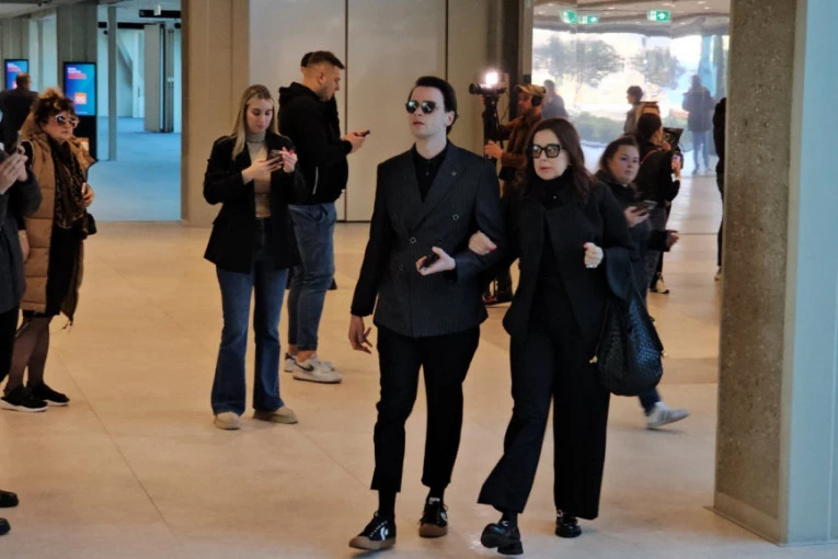 Voditeljka Dragana Katić stigla je uplakana u pratnji sina Bojana.