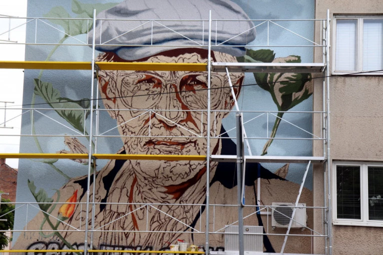 (FOTO) Napreduju radovi na muralu jednog od najznačajnijih srpskih pisaca 20. veka Dragoslava Mihailovića