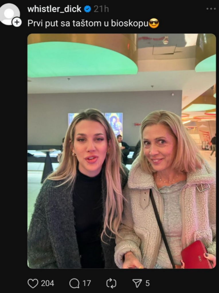 - Prvi put sa taštom u bioskopu - napisao je glumac u opisu, čime je istakao bliskost koja se razvila u porodici nakon nedavnog incidenta.