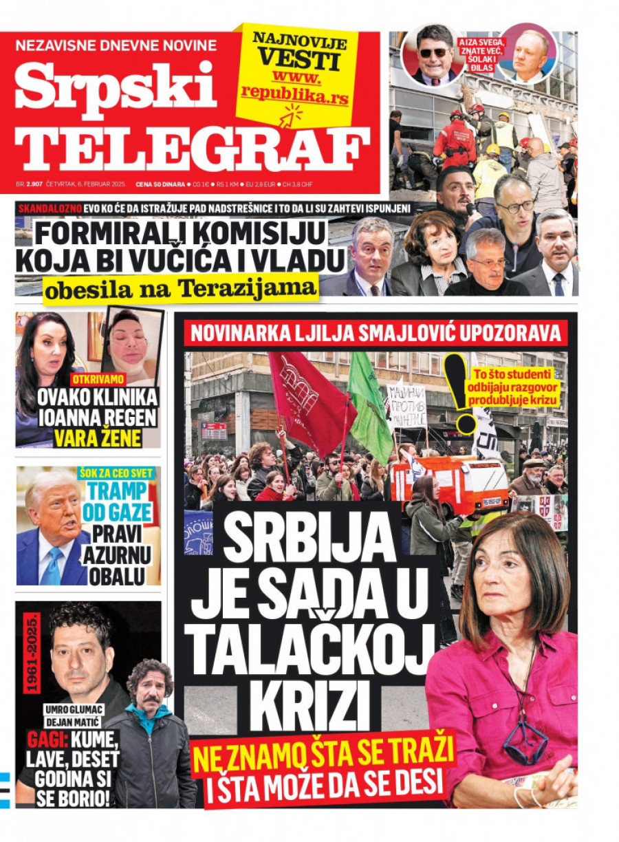 Srpski telegraf u izdanju za četvrtak 6. februar donosi pregršt važnih i interesantnih priča!