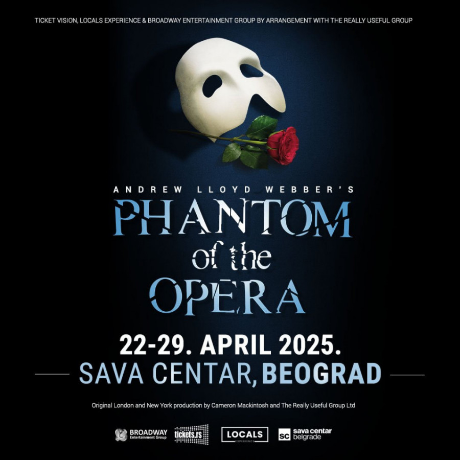 “Fantom iz opere” dolazi u Beograd uz produkciju Broadway Entertainment Group, a publici ga predstavljaju Ticket Vision i Locals Experience, u saradnji sa The Really Useful Group. Više informacija na: www.phantomoftheopera.rs