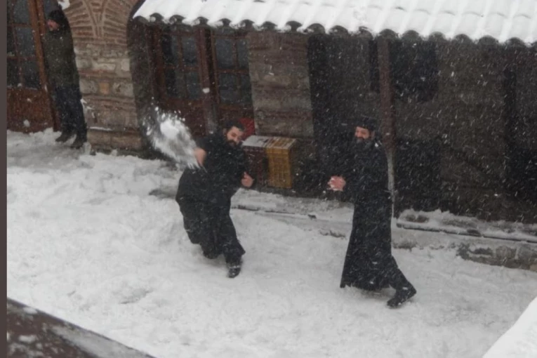 (FOTO GALERIJA) DIVNA SU TVOJA DELA, GOSPODE! Pogledajte kako se monasi grudvaju na Svetoj gori! VAŽNO JE ZADRŽATI DETE U SEBI!