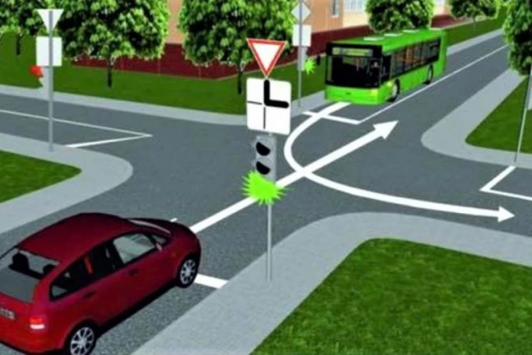 Kao što se može videti na slici, crveni automobil i zeleni autobus se nalaze na raskrsnici, a Srbi su se gotovo posvađali zbog različitih odgovora.