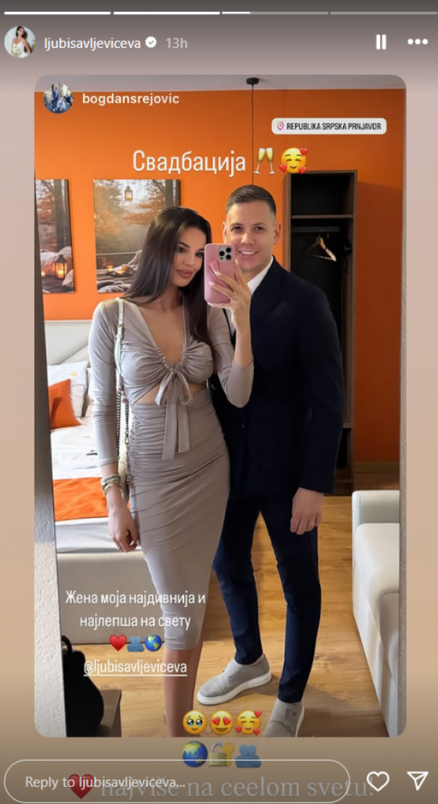 - Žena moja najdivnija i najlepša na svetu - napisao je zaljubljeni Bogdan uz fotografiju sa događaja, a Jovana mu je emotivno odgovorila rečima: