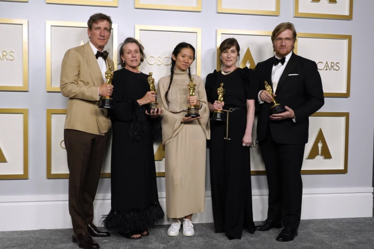 Foto: Tanjug/APZlatna statueta za najbolji film i režiju (Kloi Žao) pripala je priči o ženi koja gubi sve i potom kreće kombijem na put po Americi. Nagrađena je i glavna glumica Frensis Mekdormand, kojoj je ovo treći Oskar.