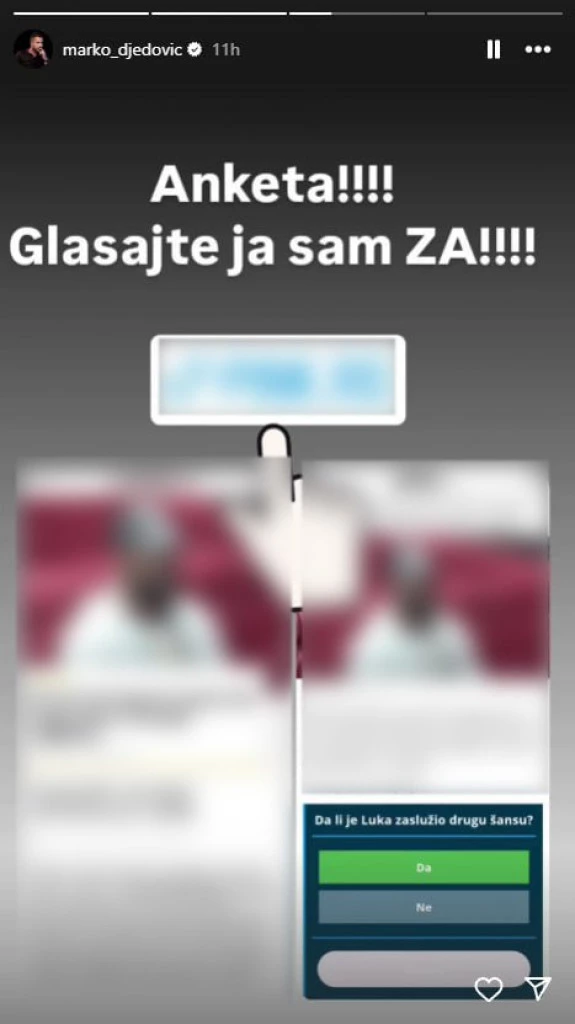 - Anketa! Glasajte, ja sam ZA - napisao je Marko i pokazao da je glasao za Lukin povratak.