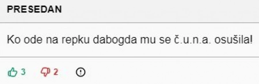 U moru uvreda i psovki "majke četničke", izdvojio se jedan koji poziva na bojkot nacionalnog tima sa krajnje bizarnom kletvom: "Ko ode na reprezentaciju, dabogda mu se ćuna osušila".