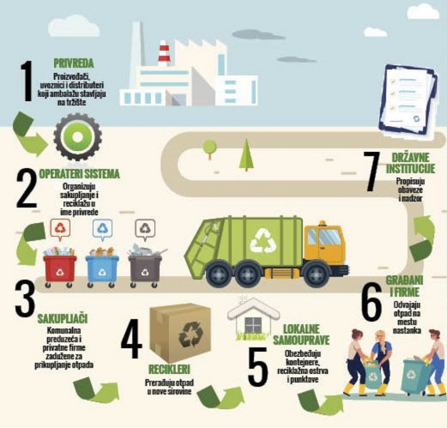 Još od 2009. godine u Srbiji važi princip Produžene odgovornosti proizvođača (EPR). To znači da kompanije koje stavljaju ambalažu na tržište imaju zakonsku obavezu da se pobrinu za njen otpad. Kako?