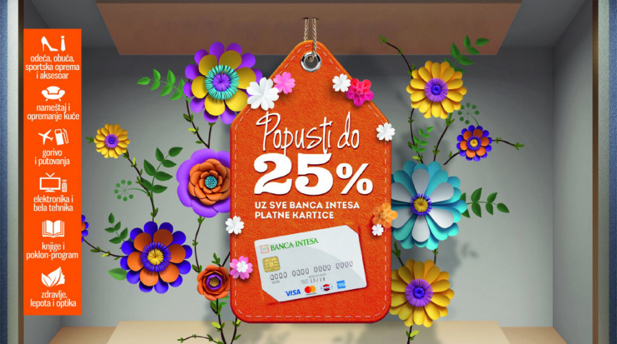 Ono što će vas posebno obradovati jeste da pored uobičajenih pogodnosti za korišćenje kreditnih kartica, popusti se ove godine odnose i na plaćanje debitnim karticama Banca Intesa, kao i na plaćanje na internet prodajnim mestima određenih partnera Banke, o čemu se možete detaljnije informisati na vebsajt adresi banke.