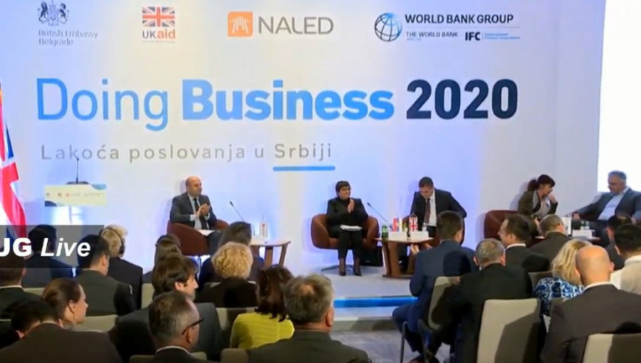 Reforme Ministarstva privrede u oblasti zaštite manjinskih akcionara i rešavanja stečaja, kao i rad Ministarstva građevinarstva na daljem unapređenju sistema građevinskih dozvola, pogurali su Srbiju do 44. pozicije na novoj Duing biznis listi, što predstavlja skok od četiri mesta u odnosu na lane, rečeno je danas na 4. godišnjoj konferenciji "Duing Biznis 2020" u Beogradu.