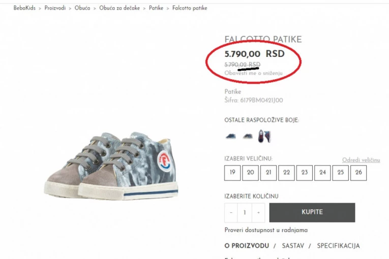 - Obradovali smo se kada smo na njihovom sajtu videli da imaju popust od 20 odsto na određene artikle iz jesenje kolekcije jer smo želeli da kupimo nešto kvalitetno, ali smo imali ograničen budžet. Međutim, oba modela patika koje smo nameravali da kupimo sinu snižena su za jednu paru. Kako bih im i dao tu jednu paru da nije sniženje. Veoma neozbiljno sa njihove strane - priča ogorčeno ovaj otac.