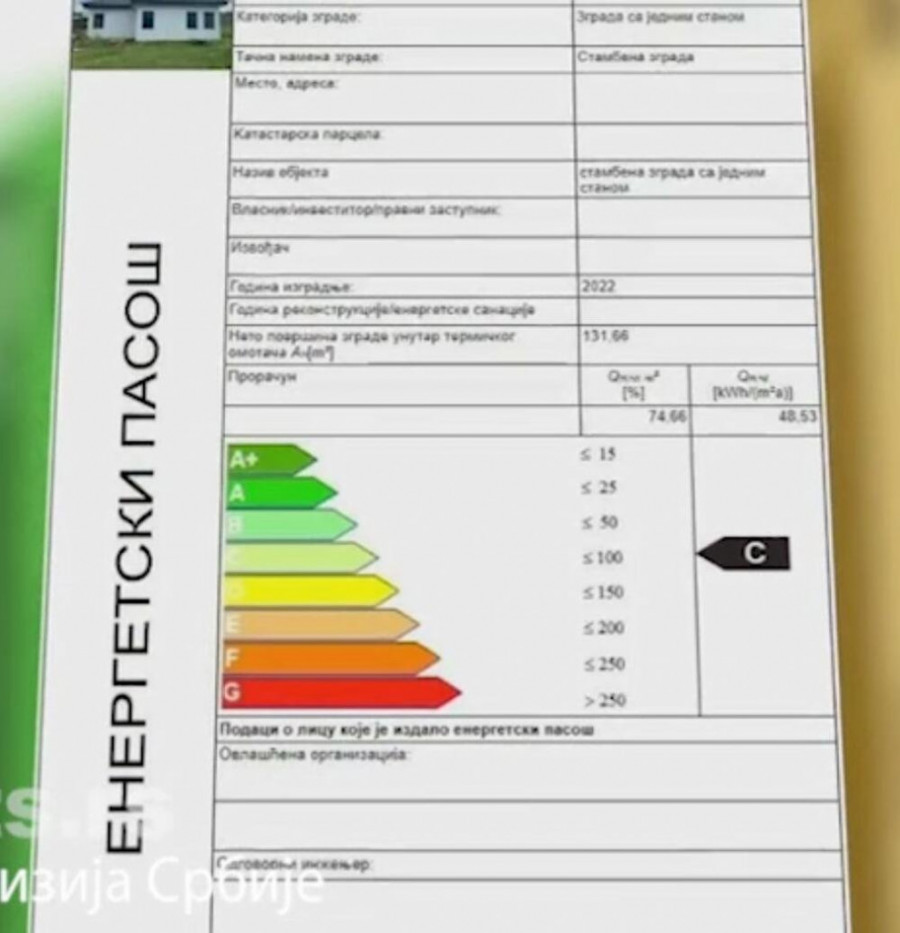 Energetski pasoš pored stabenih i poslovnih zgrada važi i za idividualne kuće, a za sada izuzete su vikendice i privremeni objekti do dve godine