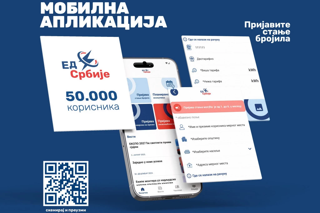Novu aplikaciju ED Srbije koja omogućava digitalnu prijavu stanja brojila instaliralo je oko 50.000 korisnika u kratkom roku. Svi korisnici koji to žele sada imaju mogućnost da početkom meseca lako i jednostavno prijave stanje brojila na mobilnom telefonu. Prvo je potrebno instalirati aplikaciju ED Srbije iz Google Play prodavnice https://play.google.com/store/apps/details?id=com.eds.edsrbije.