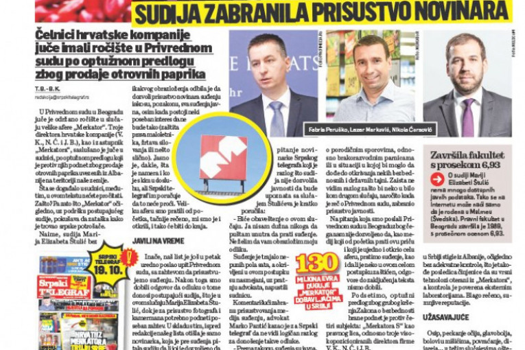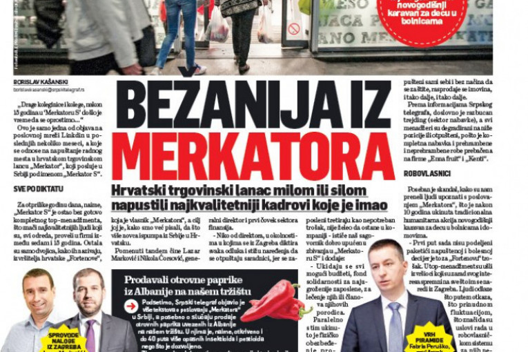 Na neki način, ovim postavljanjem poslušnika na čelo kompanije u Srbiji Hrvati ruše i srpsku privredu. Jer, osim nas dobavljača, čija je sudbina direktno vezana za "Merkator S", tu su i mnogobrojni radnici te firme, kao i preduzeća koja su za "Merkator S" radila distribuciju i nabavku robe dok sve nije centralizovano. A kako je centralizovano, vidi se po rezultatima. U kontaktu sa svima njima čujemo da su izuzetno zabrinuti šta će se dalje dešavati - opisuje jedan od naših sagovornika.