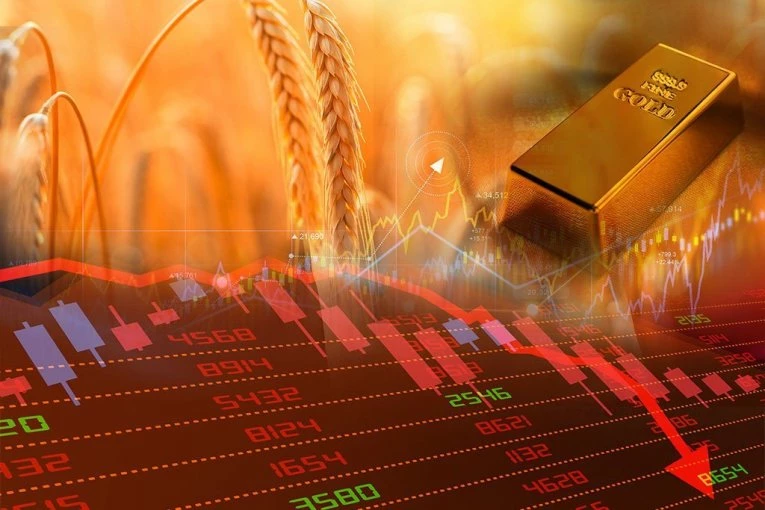Cena zlata je pala na 3.305,14 dolara za uncu, a cena pšenice na 5,3879 dolara za bušel (bušel iznosi 27,216 kg).
