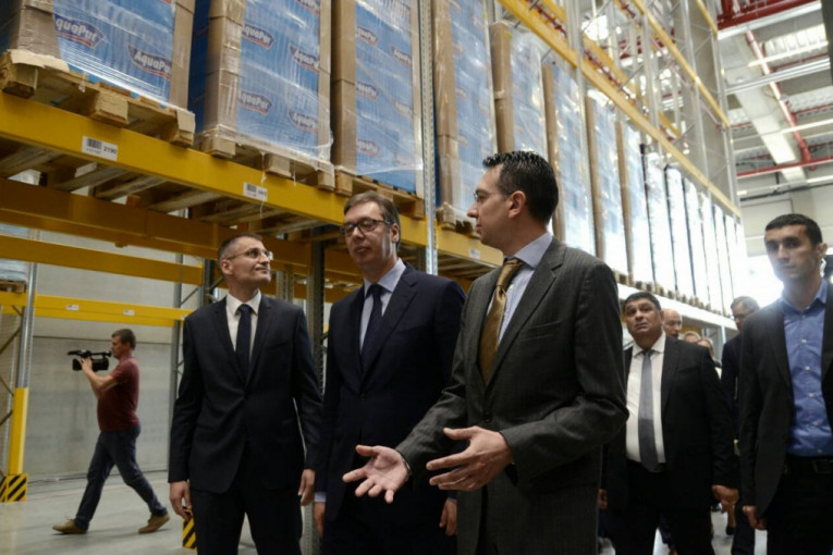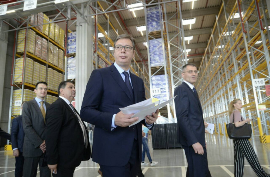 Foto: ST/N. MANDIĆ- Posebno sam srećan što je Lidli u najkraćem mogućem roku, za samo godinu dana na ogromnoj površini uspeo da završi ovaj objekat, da uloži 55 miliona evra u Srbiju na 45.00 kvadratnih metara, istovremeno zapošljavajući sve podizvođače sa više od 2.000 radnika koi su na tom poslu učestvovali - rekao je predsednik.