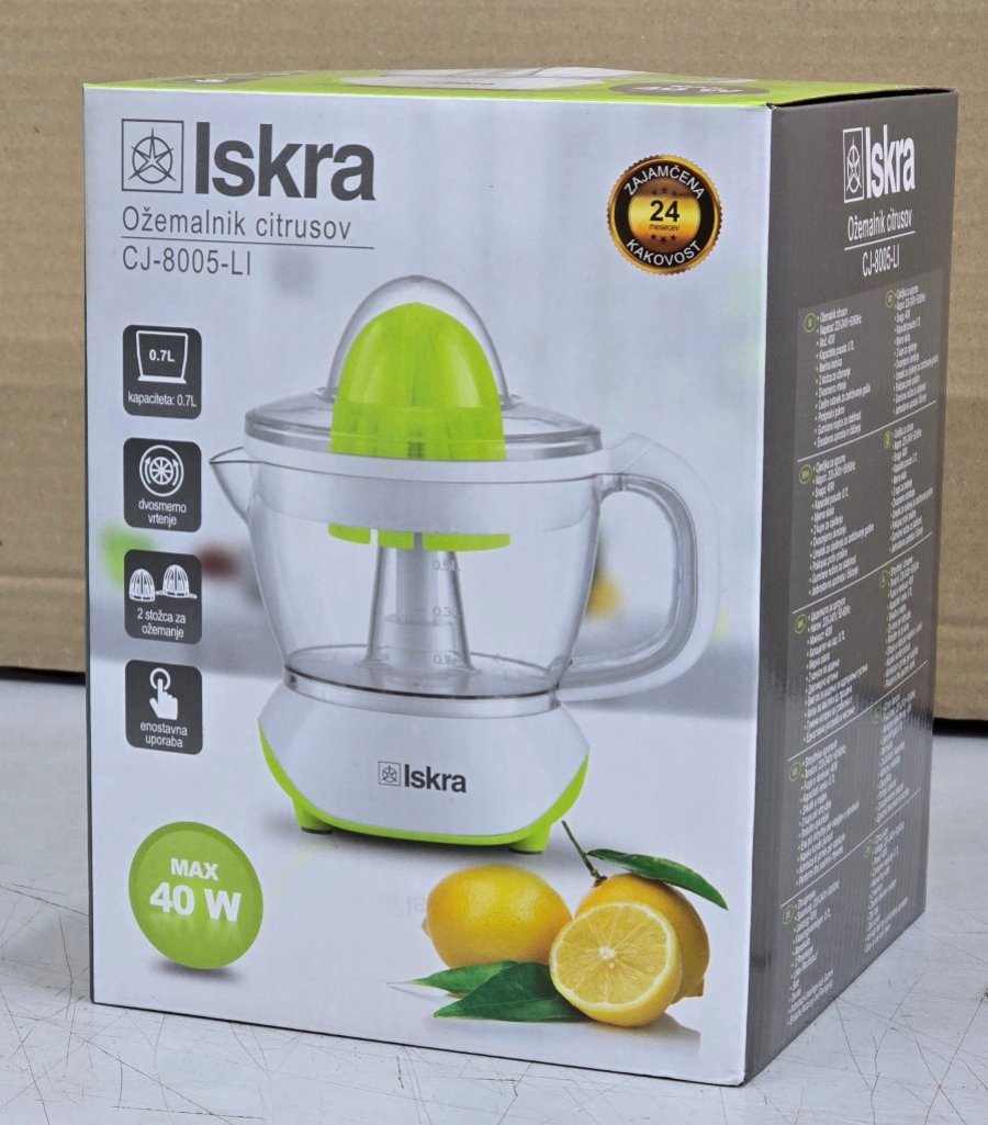 Sajt NEPRO objavio je da se sa tržišta Srbije povlači "Iskrina" cediljka za citruse, model CJ-8005-LI (EAN: 3830042568254, broj serije: CJ8005li202211), upakovane u kartonsku kutiju.