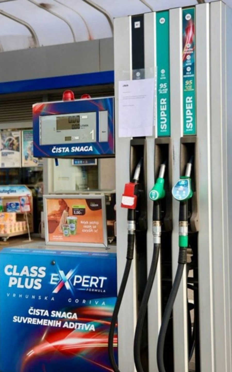 Na ulazu u pumpu bilo je istaknuto i dodatno obaveštenje da se gorivo klas premijum dizel toči po ceni običnog dizela, ali samo na dva agregata, što sugeriše ograničene zalihe i pokušaj da se ublaži situacija za vozače!