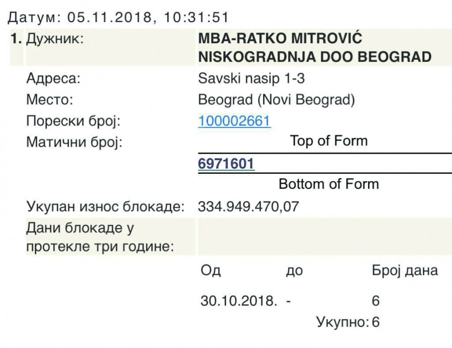 MILJKOVIĆ U BLOKADI OD 335 MILIONA: Kompanija "MBA Ratko Mitrović" u dubiozi