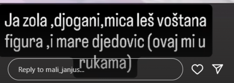 - Ja, Zola, Đogani, Mića leš voštana figura, i Mare Đedović (ovaj mi u rukama) - napisao je Janjuš.