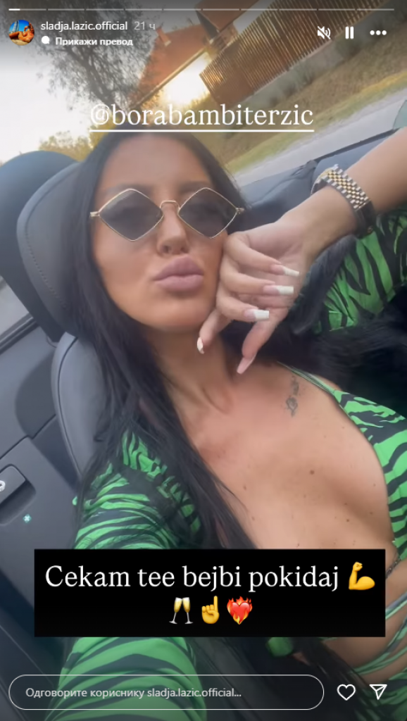 Ipak, Slađa je na svom Instagram profilu ostavila jasnu poruku o tome kome njeno srce pripada, što je dodatno šokiralo javnost. Naime, ona je objavila snimak iz svog auta, a u njemu je otkrila da napolju čeka - Borislava Terzića Terzu.