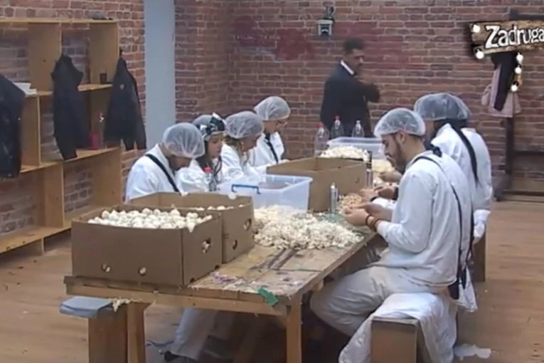 Foto: youtube.com/Zadruga OfficialZadrugari su i ovog puta, kao što je to bio slučaj u prvoj sezoni rijalitija, dobili priliku da zarade novac u fabrici "Zadruge". Međutim, Jelena Krunić nije bila dovoljno pažljiva dok je čistila luk, pa se posekla nožem.