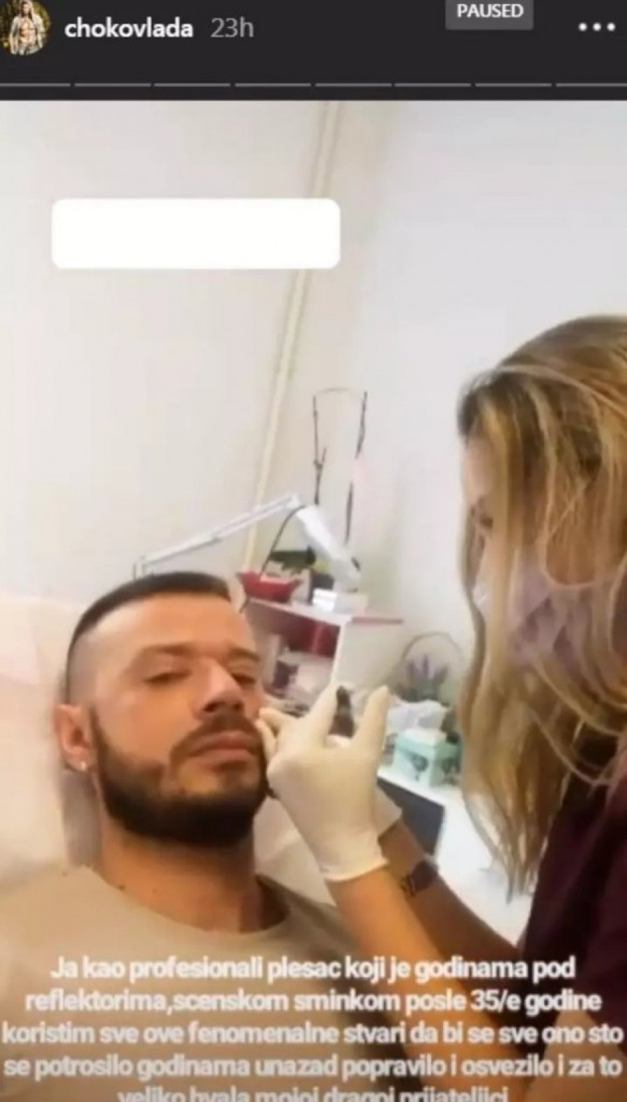 - Ja kao profesionalni plesač koji je godinama pod reflektorima, scenskom šminkom posle 35. godine koristim sve ove fenomenalne stvari da bi se sve ono što se potrošilo godinama unazad oporavilo i osvežilo i za to veliko hvala mojoj dragoj prijateljici - napisao je Vlada uz snimak sa tretmana.