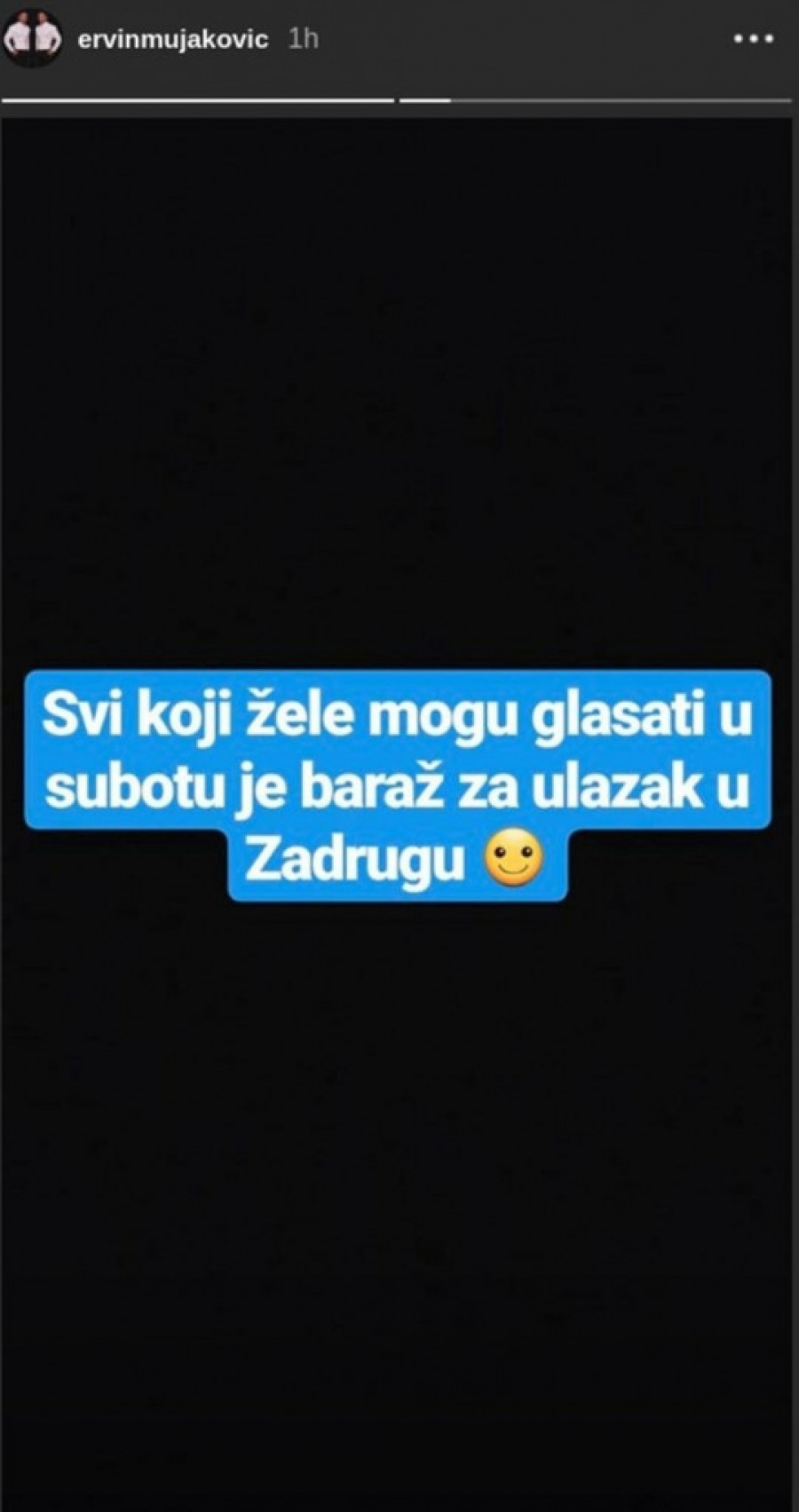 Foto: youtube.com/Zadruga OfficialMeđu prvima je ovu informaciju koja je strogo čuvana tajna, na svom Instagramu objavio bivši zadrugar Ervin Mujaković, koji je svoje pratioce pozvao da glasaju za njega.